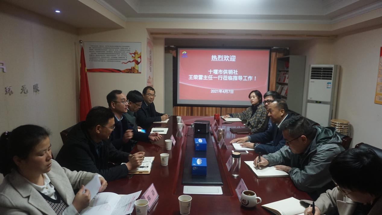 十堰市供銷社副主任陳祖斌、經(jīng)發(fā)科科長陳靜、湖北中道環(huán)??萍脊煞萦邢薰炯夹g(shù)總監(jiān)單冠及集團(tuán)公司部分高管參加座談。