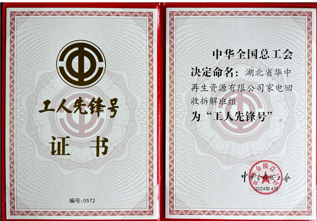 4月28日,中華全國總工會發(fā)布了《關(guān)于表彰2024年全國五一勞動獎和全國工人先鋒號的決定》,此次中華全國總工會共授予1034個集體全國工人先鋒號,我司旗下湖北省華中再生資源有限公司家電回收拆解班組榮獲殊榮,是全國供銷系統(tǒng)唯一一家受到表彰的單位。